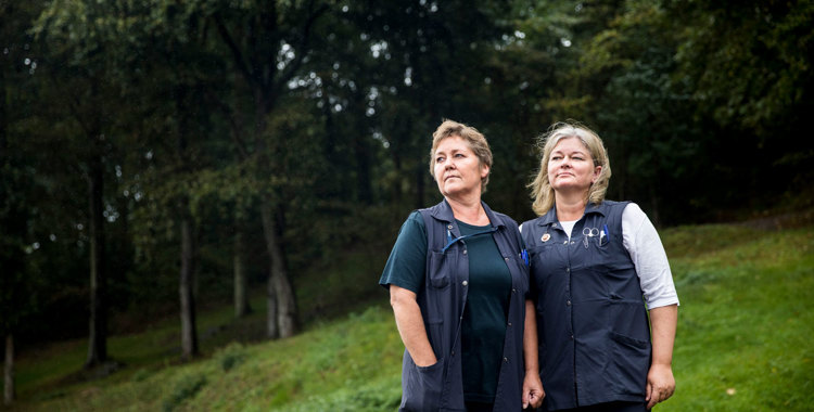 Både sygeplejerske Lotte Echwald og Sannie Christa Hansen er i enige om, at hjemmesygeplejen på Samsø er en skøn arbejdsplads, og de glæder sig til, at de hjælpende hænder er fundet.