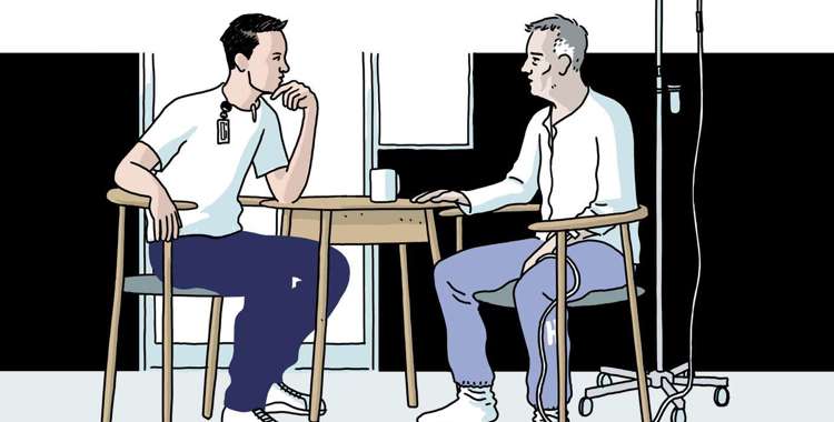 Patienten og jeg faldt i snak, og i en tid talte vi om alt fra græsslåning til livretter. Men ret pludseligt begyndte han at fortælle om sin kroniske sygdom og om, at han snart skulle dø.