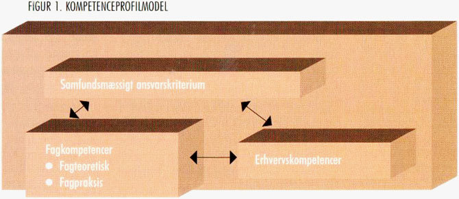 I kompetenceprofilmodellen (se fig. 1) er sygeplejerskens kernekompetencer præciseret som henholdsvis 1, fagteoretisk kompetence (epistemé), 2, praksiskompetence (phronesis) og 3, erhvervskompetence (techné).