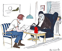 om den pågældende ældre tidligere har været ramt af depressionssygdom. Konferencen mellem den praktiserende læge og sygeplejersken kan udmønte sig i, at lægen enten indkalder til en konsultation eller evt. foretager et hjemmebesøg med henblik på at videreudrede efter gældende kriterier for at stille diagnosen depressionssygdom.