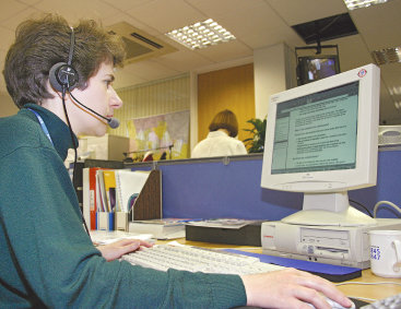 Foruden sygeplejersker har centralen i North East London ansat receptionister - call handlers - og informationsassistenter til at besvare de 600 opringninger, der kommer hvert døgn, flest om morgenen og hele aftenen igennem.