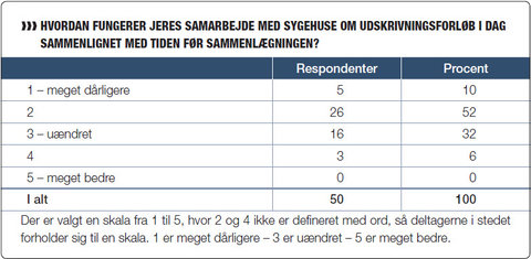 Lang vej. Kommunalreformen har indtil videre svækket samarbejdet om udskrivning af patienter fra sygehusene. Sygeplejersker i over halvdelen af landets kommuner oplever et dårligere samarbejde end for et år siden.