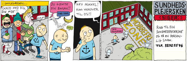 Det handler om at give sundhedstips et twist, og vi oplever ikke, at tegneserierne gør vores råd mindre seriøse. Det er en ideel måde at supplere vores information på. Pjecer får familierne rigeligt af, og ofte ender de bare i bunken mellem aviser og reklamer. I dag giver vi både skolebørn og forældre en tegneserie, når vi taler om konkrete emner. Vi supplerer også vores breve til familierne med en stribe.