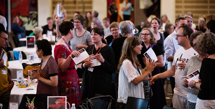 Speed-dialogen, som var dagens sidste debatform, satte gang i diskussionen om faglige fællesskaber. Sedler med bud på, hvordan Dansk Sygeplejeråd styrker det faglige i hverdagen, blev stukket i vejret, og de delegerede lettede sig fra stolene og gik rundt mellem hinanden. Et håndtryk, en hurtig snak, et par grin og så videre til den næste. Kredsene blev blandet, og bekendtskaber blev dannet.