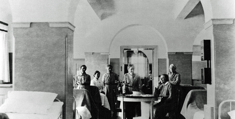 Kvindeafdelingen på Sindssygehospitalet Nykøbing Sjælland – her i 1925 med en sygeplejerske og hendes patienter – åbnede i 1915 som et topmoderne sindssygehospital bygget som en smuk haveby. Stedet var det første, der overvejende havde uddannede sygeplejersker ansat i stedet for kortuddannede eller ufaglærte plejere. Men sindssygepleje var ikke eftertragtet blandt sygeplejersker, og i perioder med mange arbejdsløse og nyuddannede sygeplejersker måtte Dansk Sygeplejeråd nærmest true dem til at tage arbejde på sindssygehospitalerne i provinsen. Det faldt ikke i god jord, og sindssygehospitalerne måtte derfor undertiden genansætte plejerne for at få dagligdagen til at køre
