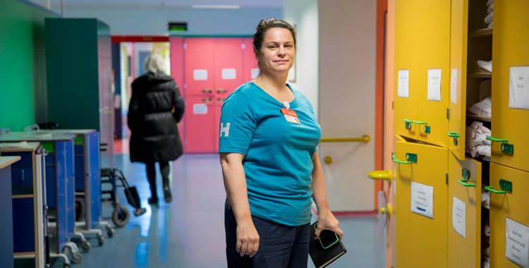 Karen Frampton er gået ned til skadestuen for at tjekke, om der er kommet nogle patienter ind, som kræver hendes hjælp. Det er der.