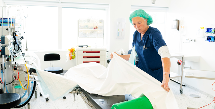”Det er ikke sådan, at du lige kan tage en kop kaffe, mens stuen bliver gjort ren efter en operation. For det er mig, der skal gøre rent. Og det er mig, der skal hente patienten på stuen. Mig, der bestiller varer og medicin til hele huset. Vi skal levere hele pakken.