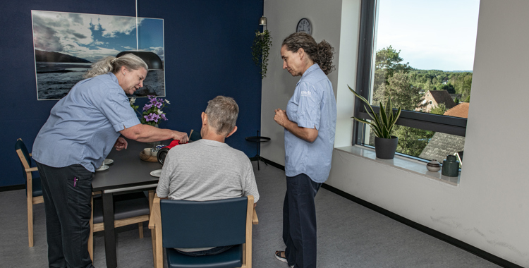 ”En del af opgaven med indretning gik også på at organisere den plads, vi har, og placere de ting, der ligger fjernt fra patienternes hverdag, uden for deres synsvidde,” forklarer Hanne Møller Nielsen.