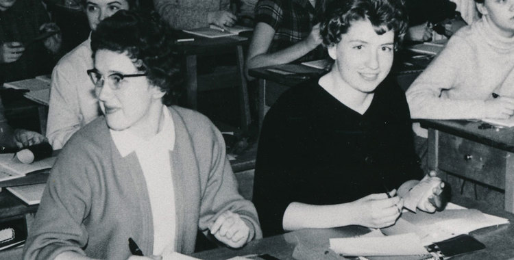 Børkop Højskole, forskole til sygeplejerskeuddannelsen, underviste bl.a. i ernæringslære. Her time med sygeplejelærer Johanne Nørnberg.