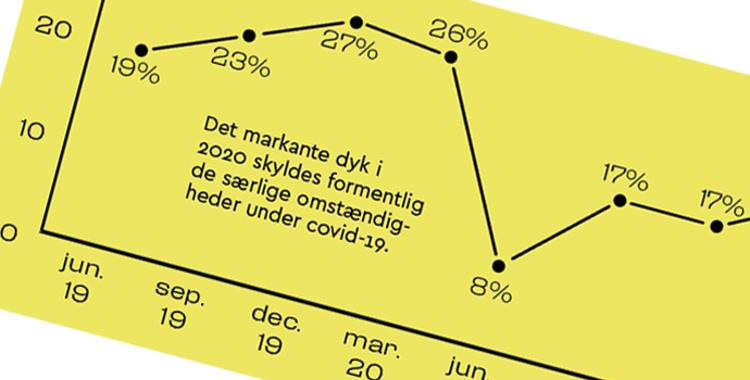De nyeste rekrutteringstal viser, at et område som Østjylland nu også halter bagefter. Her mislykkedes 46 pct. af rekrutteringerne i juni i år mod 13 pct. samme tid i 2019.