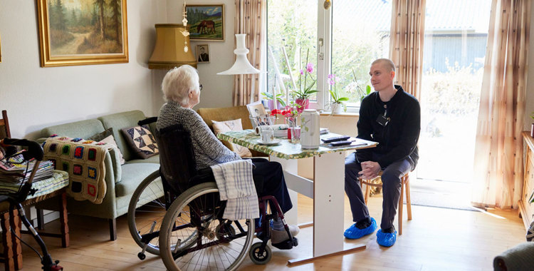 Christensen hjælper Dorthe Gregersen med dosering af hendes medicin, men kommer også for at give rum og tid