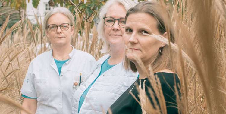 <Billedtekst> ”Patienter med søvnløshed har større risiko for angst og depression, og det smitter af på deres sociale liv og arbejdsliv,” siger sygeplejerske Susanne Pia Nielsen, her fotograferet mellem Lise Bjerrum Thisted (tv.) og Camilla Pless-Aagaard (th.).