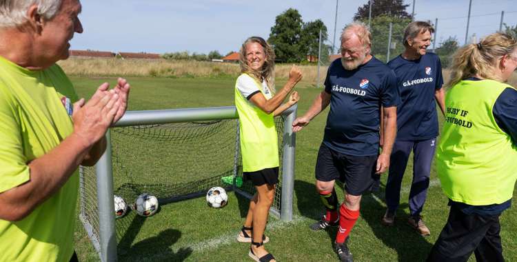 ”Vi prøvede gå-fodbold-holdet et par gange henne i hallen, hvor vi også er om vinteren. Og det var lige mig,” siger Birthe Hansen, der tidligere selv havde svært ved at komme op af sofaen pga. smerter og træthed.
