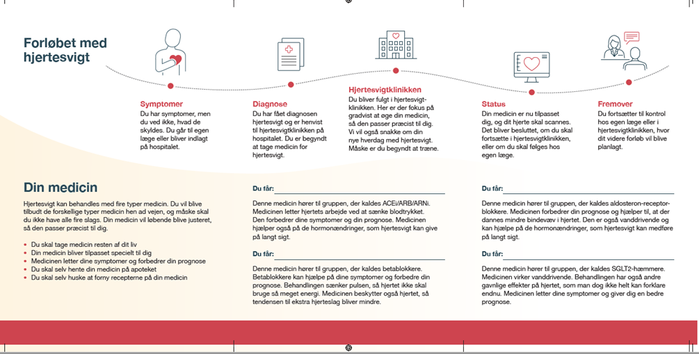 SIG-hjertesvigt og Novartis har i samarbejde udarbejdet en patientpjece, som kan bruges i samtalen med patienten. Pjecen er udarbejdet som er dialogredskab, hvor patientens forløb er skitseret og der er plads til at tilføje deres medicinske behandling.