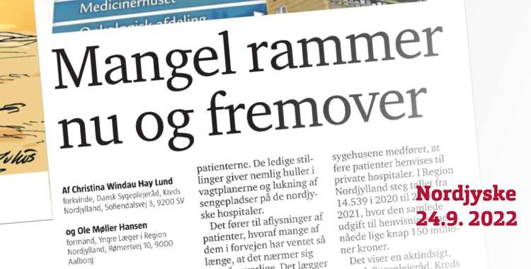 Manglen på personale på sygehusene medfører, at fere patienter henvises til private hospitaler. I Region Nordjylland steg tallet fra 14.539 i 2020 til 21.471 i 2021, hvor den samlede udgift til henvisningerne nåede lige knap 150 millioner kroner. Det viser en aktindsigt, Dansk Sygeplejeråd, Kreds Nordjylland har fået. Ofte tager privathospitalerne de patienter, der har de mindst komplicerede forløb, så de mere komplicerede forløb stadig skal varetages i det offentlige sundhedsvæsen. Det presser de ansatte yderligere, fordi der tælles i antal patienter, ikke i kompleksitet. Samtidig forringer det også uddannelsen af lægerne, der også har brug for mange forholdsvis ukomplicerede operationer for at øve teknikkerne.
