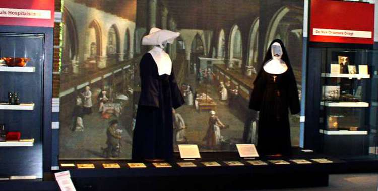 I særudstillingen følger vi denne udvikling med de franske Sct. Vincent Søstre og Sct. Joseph Søstre som de mest betydningsfulde ordener, hvis virke har dannet forbillede for den moderne sygepleje.