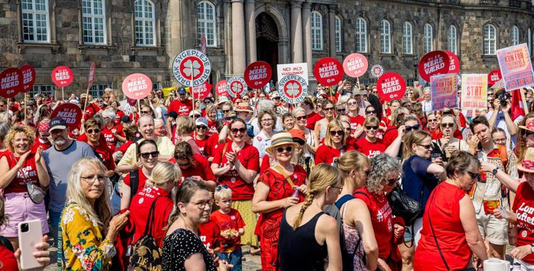 ”Jeg bliver helt rørt og får gåsehud på armene.” Sådan lød det fra en af de mange sygeplejersker, der lørdag den 19. juni markerede første strejkedag ved at demonstrere i gågaderne i Holstebro, Viborg og Aarhus. Alle steder blev de mødt af klapsalver og massiv opbakning fra borgerne som her i Viborg.